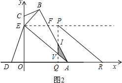 <t≤3时,设△AOE平移到△PQR的位置,PQ交AB于点I,交AE于点V.