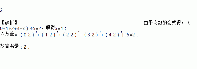 若一组数据0,1,2,3,x的平均数是2,则这组数据的方差是___________.