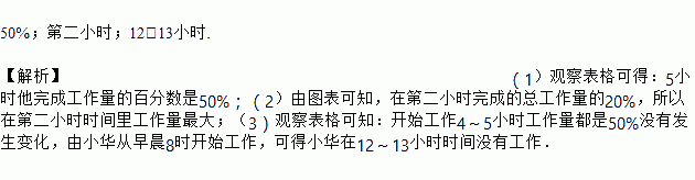 小华粉刷他的卧室共花去10小时,他记录的完成工作量的百分数如下: