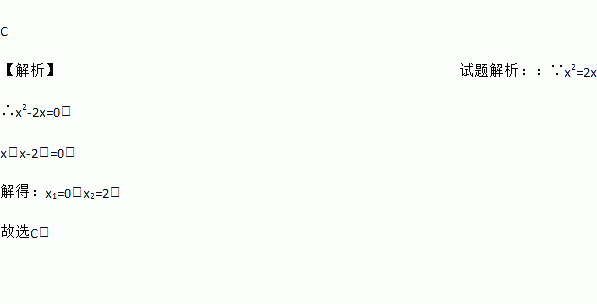 方程x2=2x的解为( )