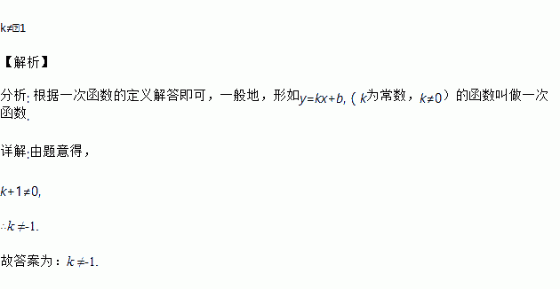 函数y=(k+1)x+k2﹣1中,当k满足 时,它是一次函数.