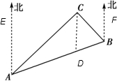 点评:本题考查方向角的知识,难度一般,关键是理解方向角的定义及在图形中所表示的角,另外解答本体还要运用三角形的内角和为180°这一知识点.