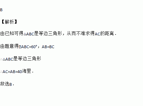 A. 30海里 B. 40海里 C. 50海里 D. 60海里