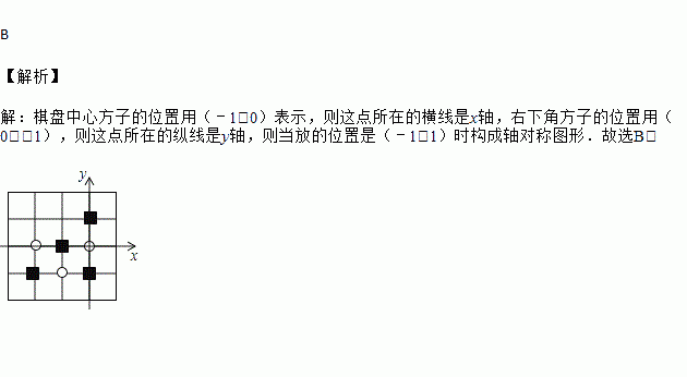 小莹和小博士下棋,小莹执圆子,小博士执方子.如图,棋盘中心方子的位置用(﹣1,0)表示,右下角方子的位置用(0,﹣1)表示.小莹将第4枚圆子放入棋盘后,所有棋子构成一个轴对称图形.她放的位置是( )