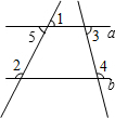 解:∵∠1=∠5=56°,∠2=124°,