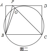 (3)作一个圆,使该圆经过B、C点且和AD相切,如图二所示.![]()