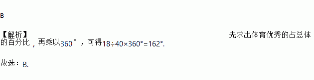 一个班有40名学生,在期末体育考试中,优秀的有18人,在扇形统计图中,代表体育优秀扇形的圆心角是( )