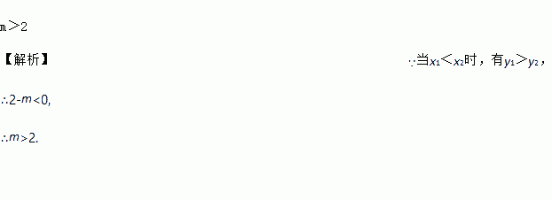 m>2 【解析】∵当x1<x2时,有y1>y2, ∴2-m<0, ∴m>2.