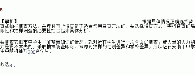 要调查安顺市中学生了解禁毒知识的情况,下列抽样调查最适合的是( )