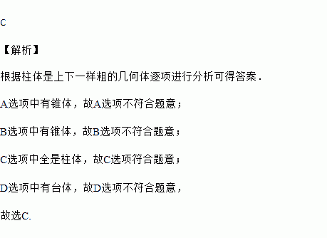 下列立体图形中,都是柱体的为( )