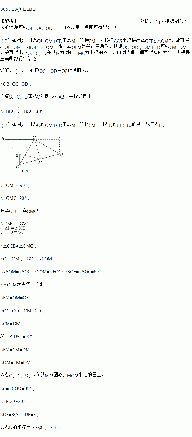 将线段OB绕点O逆时针旋转60°得到线段OC,继续旋转α(0°<α<120°)得到线段OD,连接CD.