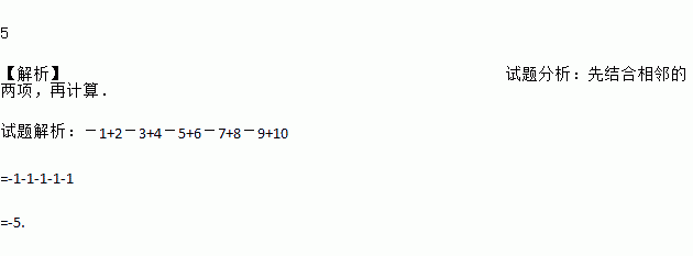 计算:-1+2-3+4-5+6-7+8-9+10=______;