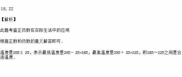 某种药品的说明书上标明保存温度是(20±2)℃,由此可知在__℃~__℃范围内保存才合适。