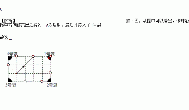 如图,是一个经过改造的台球桌面的示意图,图中四个角上的阴影部分分别表示四个入球孔,如果一个球按图中所示的方向被击出,该球最后落入1号袋,经过反射的次数是( )