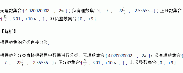 将下列各数填入相应的集合中.