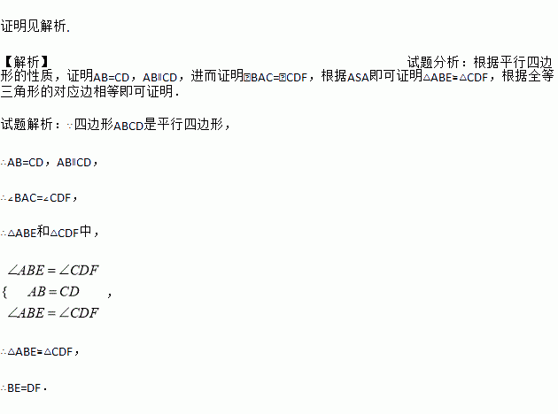 如图,在?ABCD中,点E,F在AC上,且∠ABE=∠CDF,求证:BE=DF.