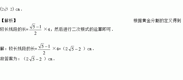 把长度为4cm的线段进行黄金分割,则较长线段的长是__________cm.