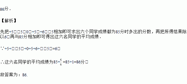 已知数学成绩85分以上为优秀,以85分为基准做简记,例如:89分记为+4,83分记为﹣2,王老师将七年级一班六名同学的成绩简记为+5,﹣5,0,+5,+6,﹣5,则这六名同学的平均成绩为_____分.