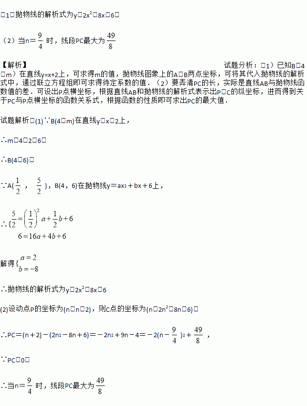 ),B(4,m),点P是线段AB上异于A,B的动点,过点P作PC⊥x轴于点D,交抛物线于点C.