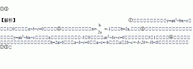 如图,是二次函数 y=ax2+bx+c(a≠0)的图象的一部分, 给出下列命题 :①a+b+c=0;②b>2a;③ax2+bx+c=0的两根分别为-3和1;④a-2b+c>0.其中正确的命题是__________.(只要求填写正确命题的序号)