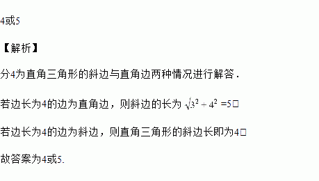 已知一个直角三角形的两边长分别为3和4,则斜边长为_____________.