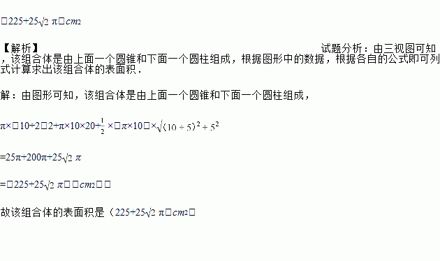 一组合体的三视图如图所示,该组合体是由哪几个几何体组成,并求出该组合体的表面积(单位:cm2)