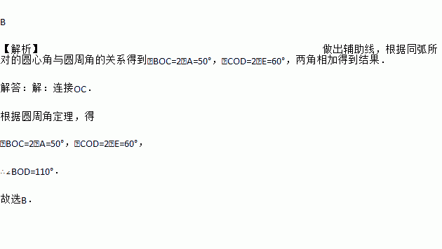 下图中∠BOD的度数是( )