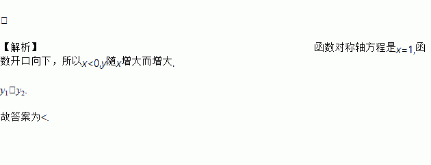 < 【解析】函数对称轴方程是x=1,函数开口向下,所以x<0,y随x增大而增大. y1<y2. 故答案为<.