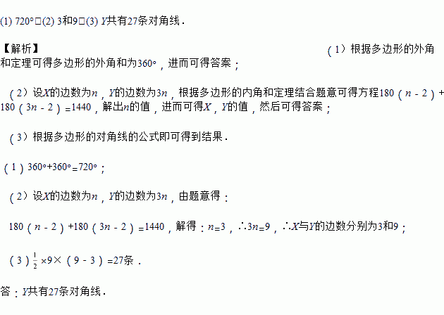 (1)求X与Y的外角和相加的度数;