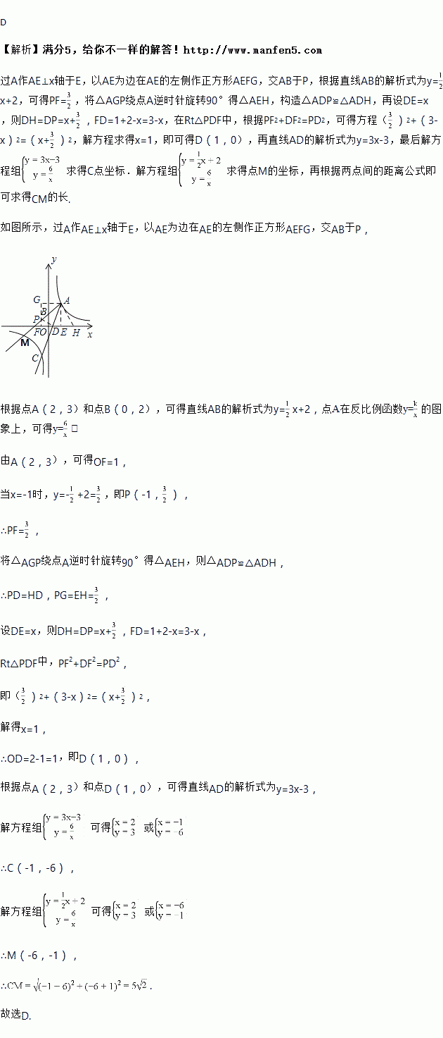 的图象上,作射线AB,交反比例函数图象于另一点M,再将射线AB绕点A按逆时针方向旋转45°,交反比例函数图象于点C,则CM的长度为( )