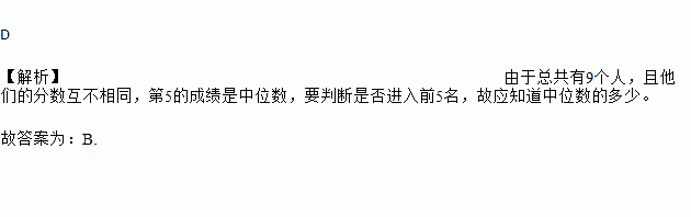 在某校“我的中国梦”演讲比赛中,有9名学生参加比赛,他们决赛的最终成绩各不相同,其中的一名学生要想知道自己能否进入前5名,不仅要了解自己的成绩,还要了解这9名学生成绩的( )