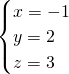 把y=2代入①得:x=-1,z=3