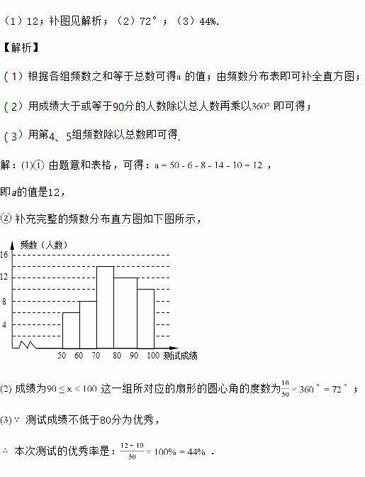 若测试成绩不低于80分为优秀,则本次测试的优秀率![]()