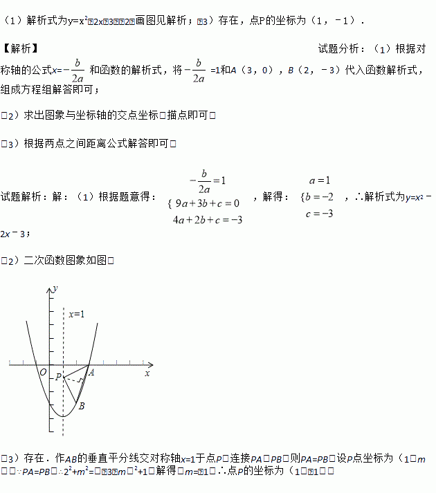 (3)在对称轴x=1上是否存在一点P,使△PAB中PA=PB?若存在,求出P点的坐标;若不存在,说明理由.