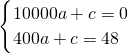 设与该抛物线对应的函数关系式为:y=ax2+c,