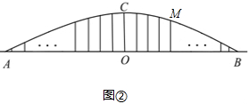 (2)若相邻系杆之间的间距均为5米(不考虑系杆的粗细),则是否存在一根系杆的长度恰好是OC长度的一半?请说明理由.
