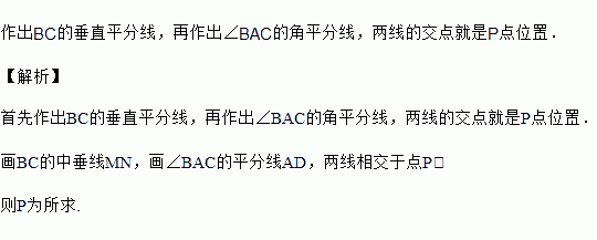 如图,在△ABC中找一点P,使P到AB和AC的距离相等,并且到B、C两点的距离也相等.