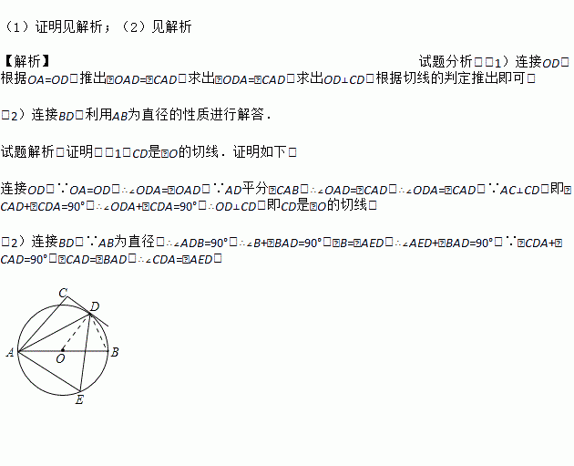 (1)判断CD与⊙O的位置关系,并说明理由;