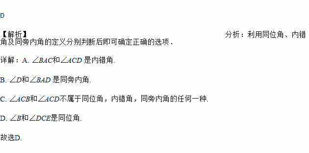 A. ∠BAC和∠ACD B. ∠D和∠BAD C. ∠ACB和∠ACD D. ∠B和∠DCE