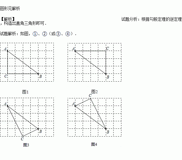 图1、图2是两张形状、大小完全相同的方格纸,方格纸中的每个小正方形的边长均为1,点A和点B在小正方形的顶点上.请你在图1、图2中各画出一个以A,B为顶点的直角三角形,使所画两直角三角形的形状不同(另一顶点为小正方形的顶点).