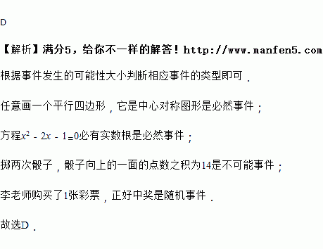 C. 掷两次骰子,骰子向上的一面的点数之积为14