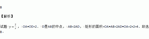 如图,反比例函数的图象经过矩形OABC的边AB的中点D ,则矩形OABC的面积为( )
