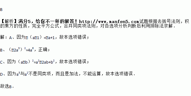 A. ﹣(a﹣1)=﹣a﹣1 B. (﹣2a3)2=4a6 C. (a﹣b)2=a2﹣b2 D. a3+a2=2a5