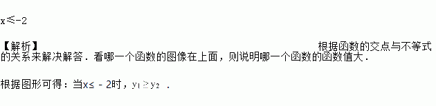 如图,同一直角坐标系中,一次函数y1=k1x+b与正比例函数y2=k2x的图象如图所示,则满足y1≥y2的x的取值范围是_____.