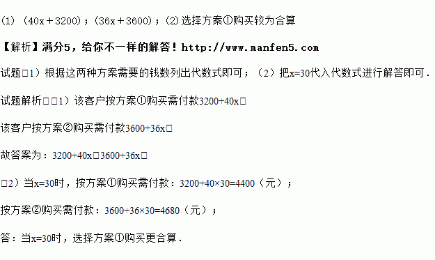 (2)若x=30,通过计算说明此时按哪种方案购买较为合算?