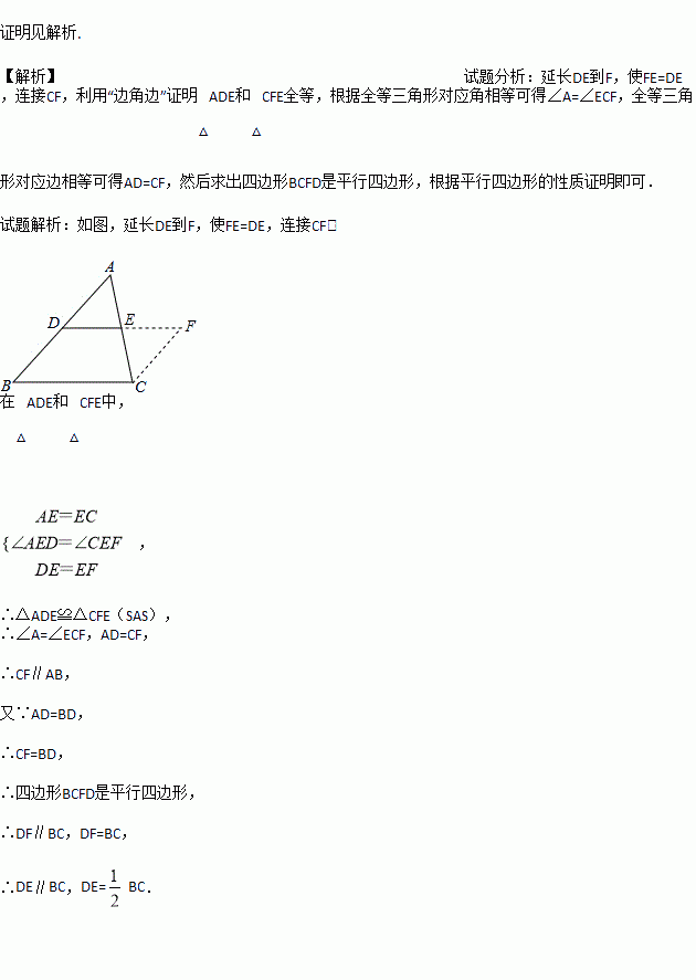 完成证明过程:已知:如图, 是的中位线,求证, .