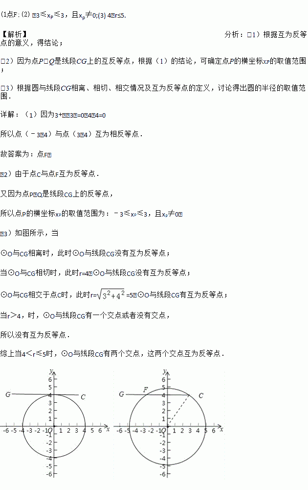 (2)已知点G(﹣5,4),连接线段CG,若在线段CG上存在两点P,Q互为反等点,求点P的横坐标xP的取值范围;