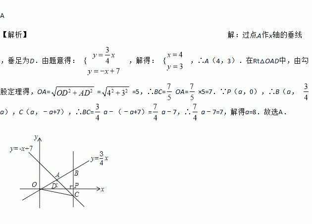 的图象交于点A.设x轴上一点P(a,0),过点P作x轴的垂线(垂线位于点A的右侧),分别交