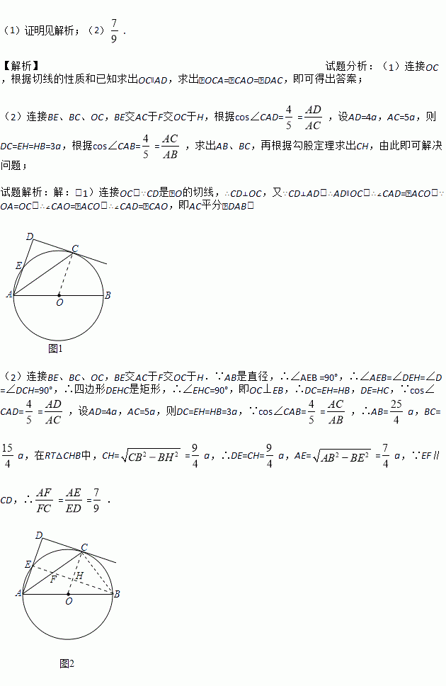 如图,点C在以AB为直径的⊙O上,AD与过点C的切线垂直,垂足为点D,AD交⊙O于点E.