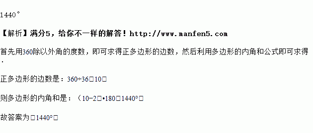 一个正多边形每一个外角为36°,则这个多边形的内角和为__________.